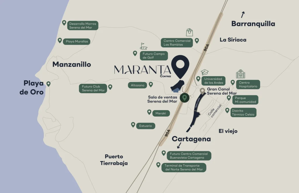 Maranta Contree es un proyecto residencial en Serena del Mar, Cartagena, que combina diseño sofisticado, confort y naturaleza para ofrecer un estilo de vida exclusivo y auténtico. Concebido para integrarse con su entorno entre el mar Caribe y la Ciénaga de la Virgen, cada detalle está pensado para el bienestar, la calma y la reconexión. Más que un lugar para vivir, es un privilegio que transforma lo cotidiano en experiencias serenas y significativas.